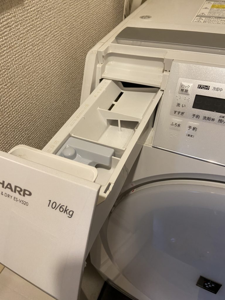 洗剤は、こんな引き出し式が多いですが、洗剤、柔軟剤等を入れるボックスがあります。