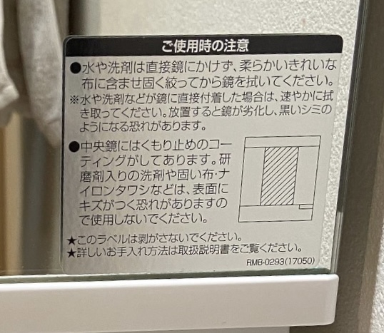 こういった曇り止め加工が施されている鏡は、空拭きや固いぞうきんなどで拭くとキズが入る可能性があります。