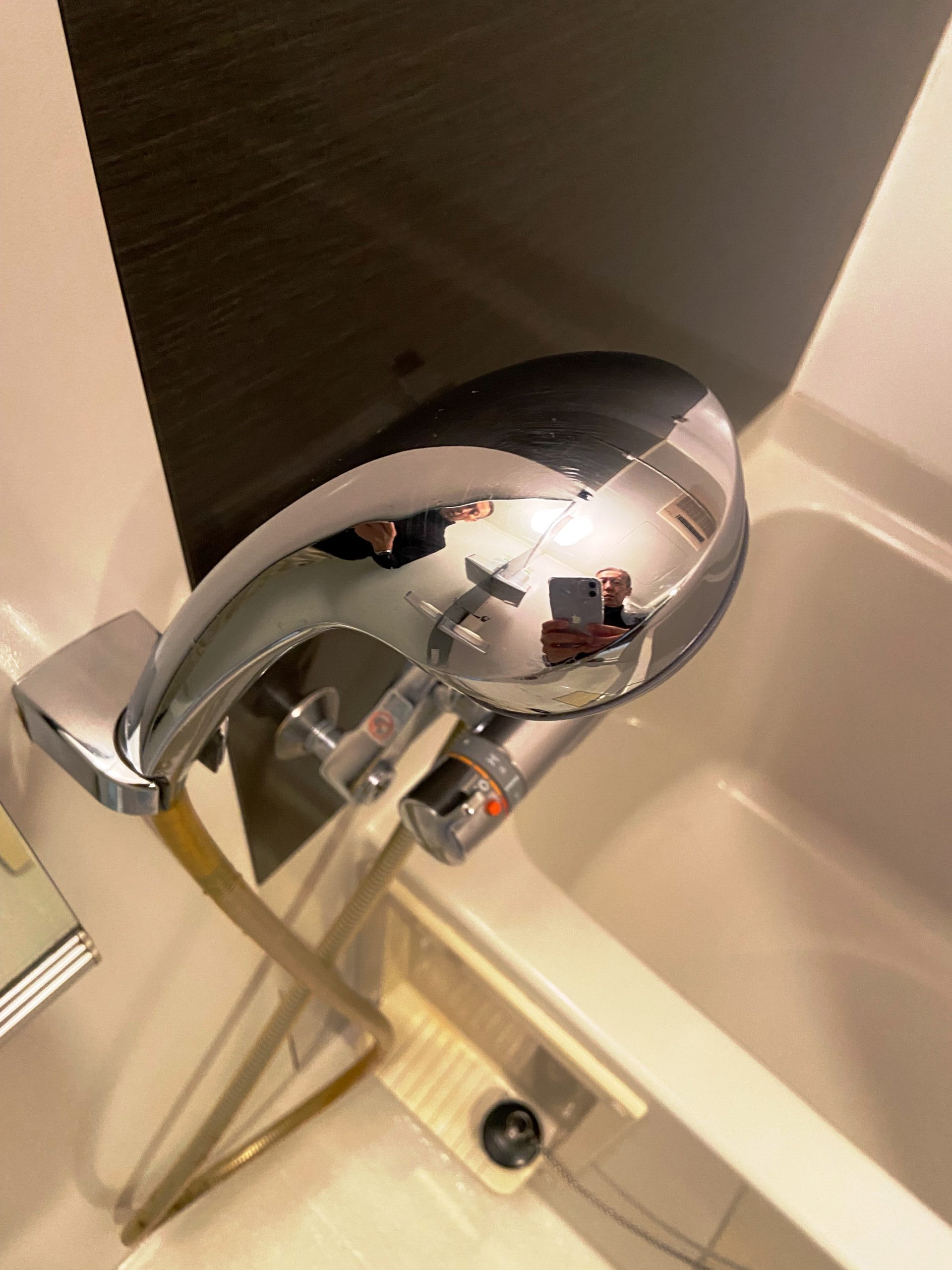 このお宅は特に光りモノが多い家ですが、こういったシャワーヘッドやドアノブ、トイレットペーパーのホルダなどもステンレス製の場合は光りモノになります。