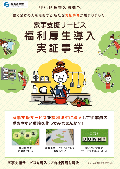 経済産業省が実施する「家事支援サービス福利厚生導入実証事業」という事業が、今月から12月31日までの期間限定で始まります。